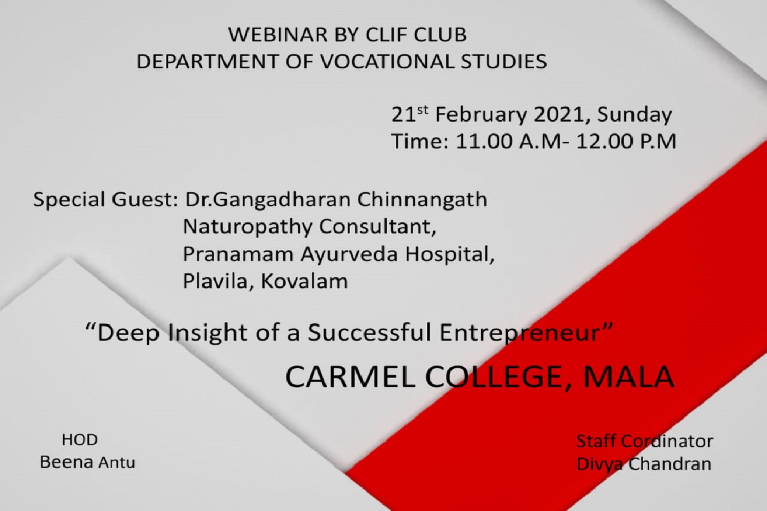 There are different Clubs and forums working in affiliation to each department. They conduct different activities in connection with their academic programme. To develop initiative, sense of responsiblity and to widen the interests of the students, the college offers various clubs such as: